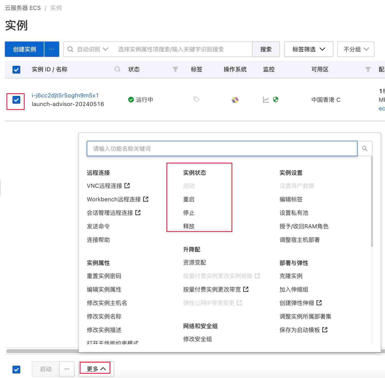 2、在左侧导航栏,选择实例与镜像 > 实例,在顶部菜单栏处,选择目标ECS实例所在地域,选择需要重装系统的服务器实例。
