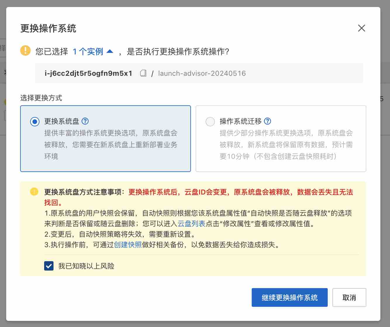 阿里云国际站服务器重装系统需要注意的是,在进行系统重装之前,一定要备份好服务器上的重要数据,以免因操作失误导致数据丢失。同时,更换操作系统后,云盘ID会变更,原系统盘会被释放,数据会丢失且无法找回。